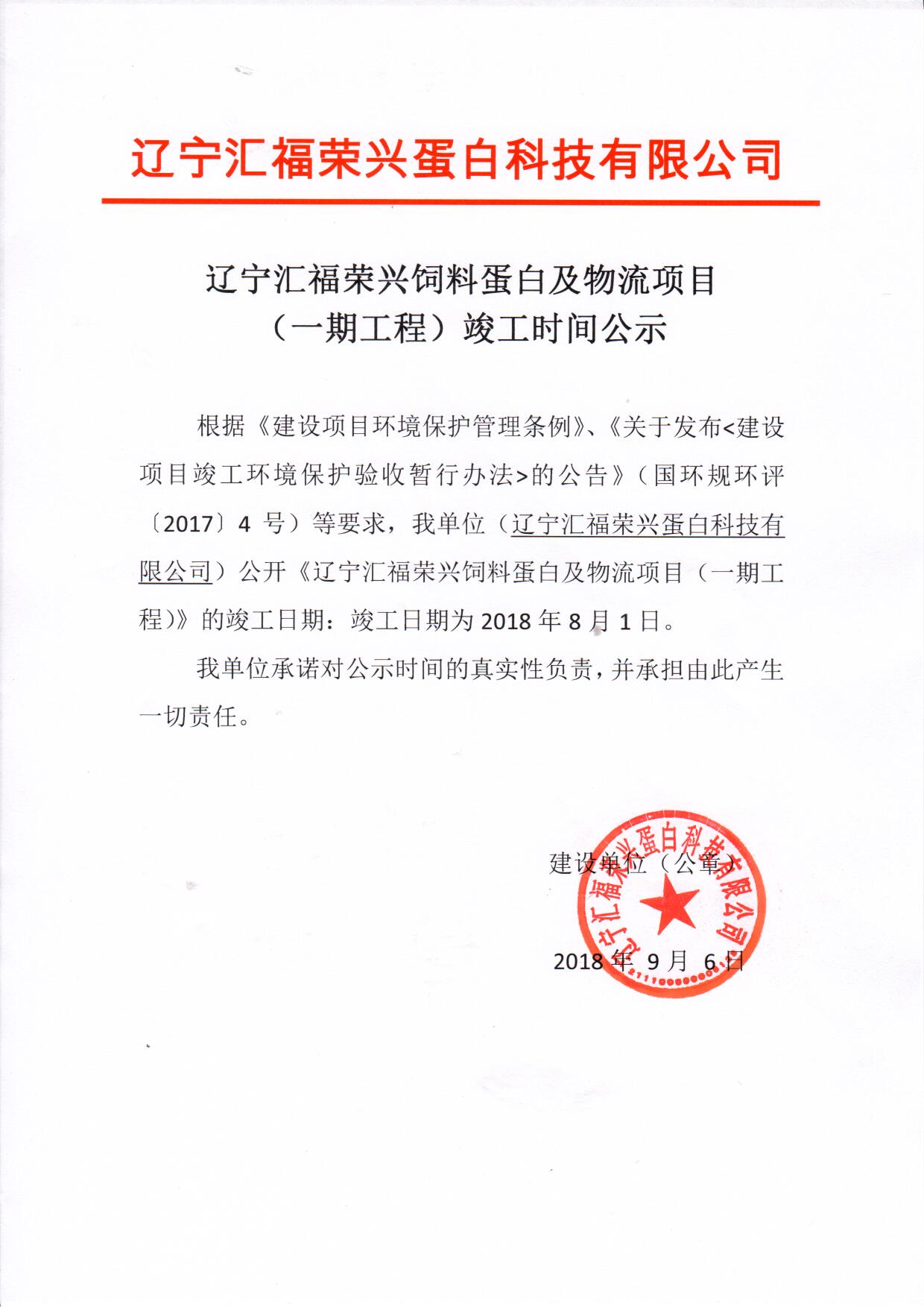 辽宁汇福荣兴蛋白科技与物流项目竣工时间公示