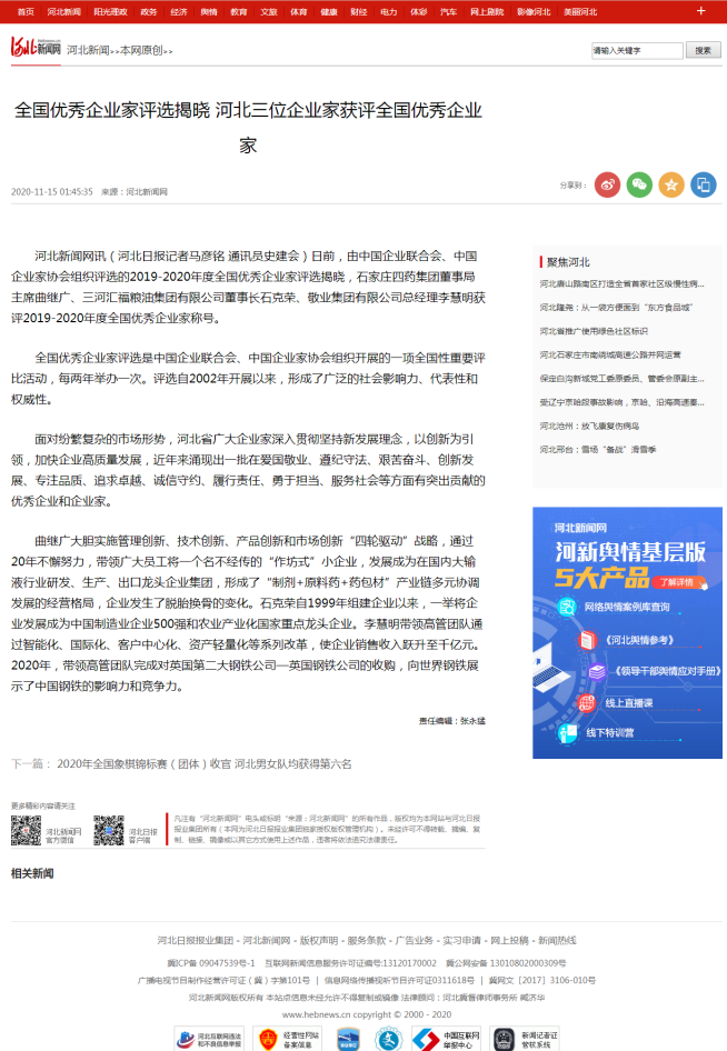 全国优秀企业家评选揭晓-河北三位企业家获评全国优秀企业家